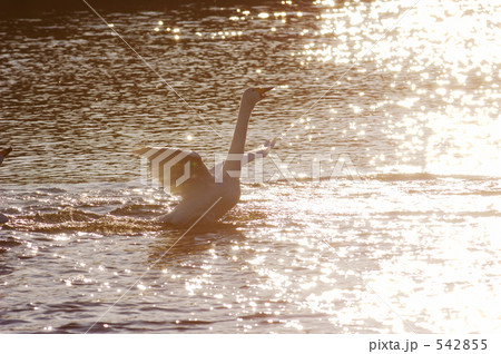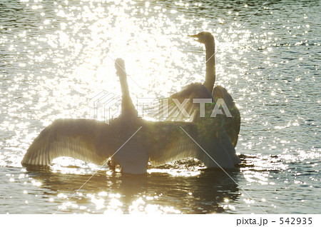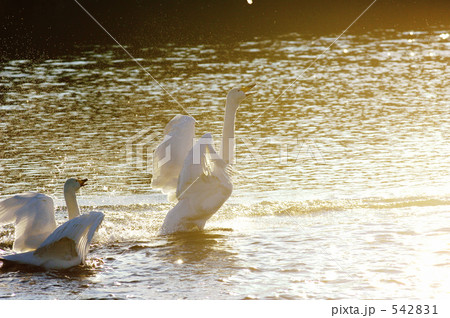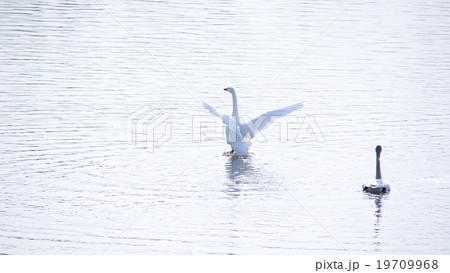 再開の瞬間を喜び翼を広げる津波で被災した仙台市農業園芸センター大沼のコハクチョウ復興の羽ばたき白鳥