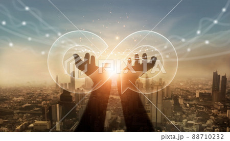 Circular economy icon. Eternity, endless and unlimited, circular economy for future growth of business and environment sustainable on nature background.
