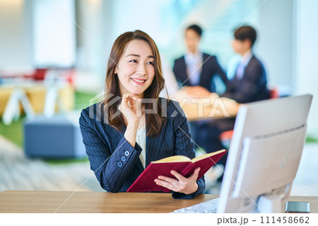 オフィスで考える・悩むビジネスウーマン(トラブル・ミス・業績・企画・悩む)