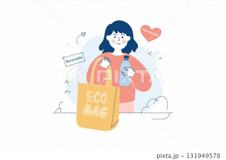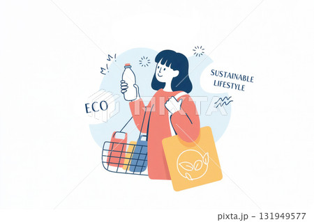 サステナブルな買い物をする女性(エコバッグ・マイボトル)