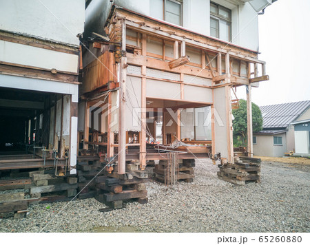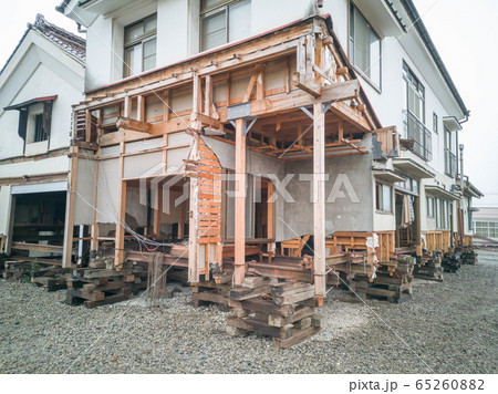 劣化した水道管 パイプ 廃材 家屋解体の写真素材 老朽化した家の解体