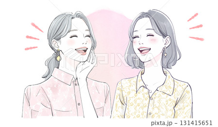水彩画・手描き風のお笑い・大爆笑する女性のイラスト素材