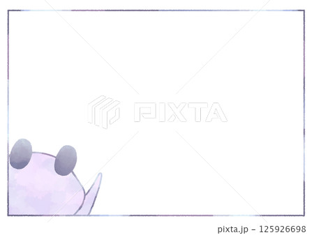 角から顔をだして挨拶するカエルのフレーム(紫色)