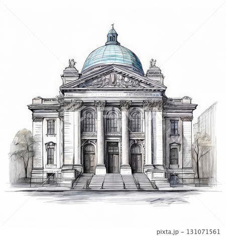 an AI Image Generator, Illustration of a Classical Domed Building with Urban Background