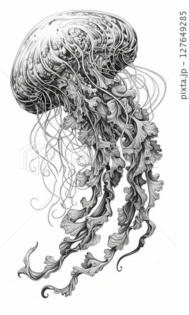 Intricate sketch of a jellyfish with flowing tentacles and detailed patterns