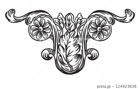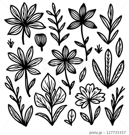 Elegant hand-drawn botanical illustration of floral elements in black and white