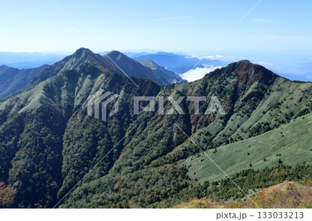 弥山から堂ヶ森への尾根を眺める (愛媛県 石鎚山系)