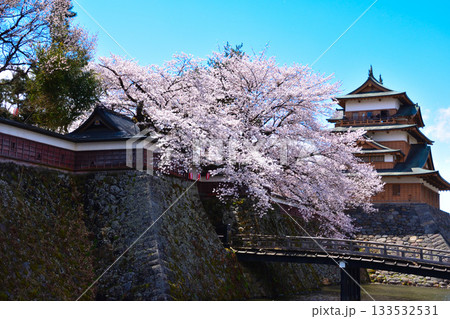 【長野県】快晴の高島城と角櫓と満開の桜