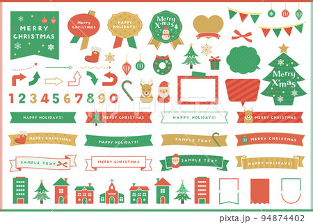 クリスマスのイラストアイコンとフレーム、リボンのデザインセット / ベクター,あしらい,吹き出し,シ