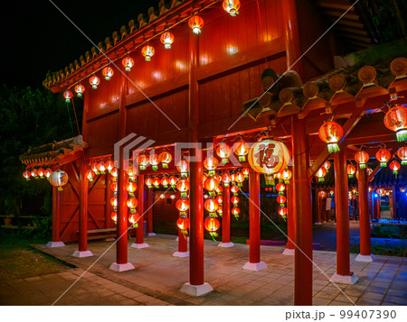 沖縄 冬の東南植物楽園 水上楽園の池 イルミネーション