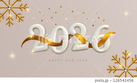 2026 Happy New Year Realistic 3d Number Golden Ribbon Banner Background Greeting Invitation Luxury Card