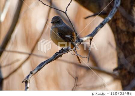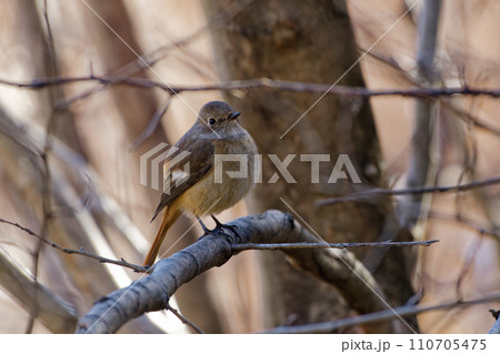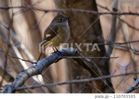 冬鳥 枝に止まるヒタキ科ジョウビタキ♀
