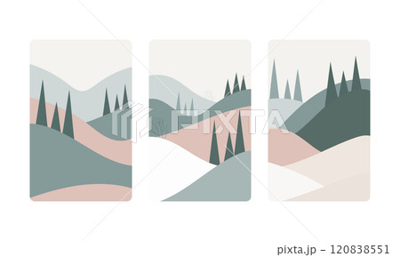 Vector illustration. Image of snowy hills covered with pine forests. A clear contrast between the white peaks and the dark green of the trees.