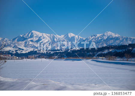 真冬の北アルプスと快晴の空 長野県白馬村