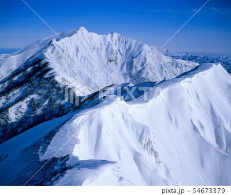 冬の山岳風景 谷川岳 山頂付近からの風景