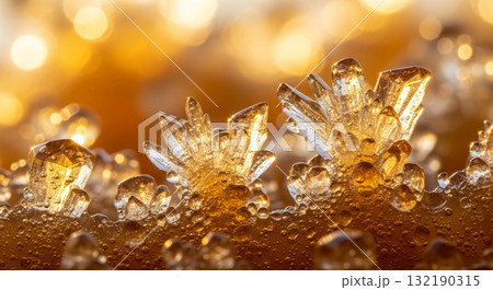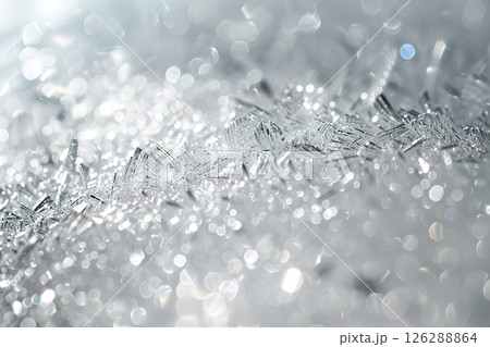 Closeup of shimmering ice crystals on a reflective snowy surface