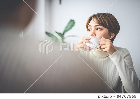リビングでゴロゴロしている女性
