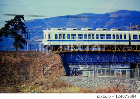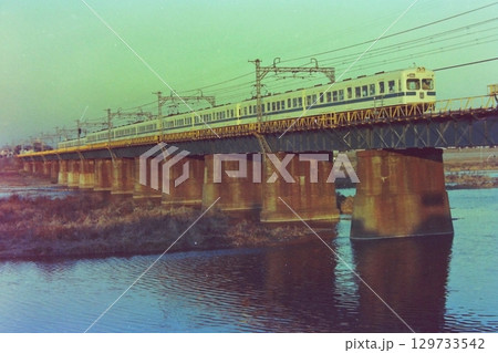 小田急、2200形2214~2211+2400形2478冷房車~、多摩川旧橋梁、1979年1月6日