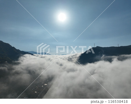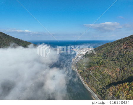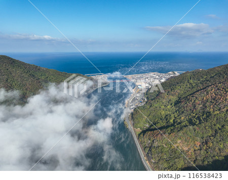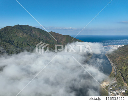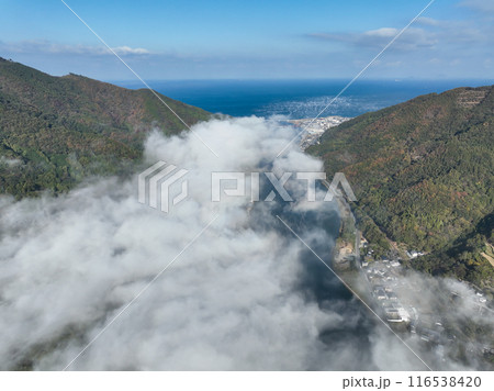 愛媛県大洲市 上空から見た肱川あらし