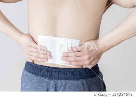 腰に湿布を貼る男性 腰痛 湿布 筋肉痛