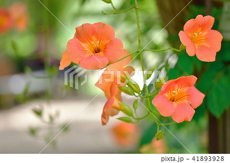 オレンジ色の凌霄花(のうぜんかずら) 夏の花