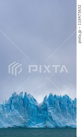 Towering blue glacier under cloudy sky
