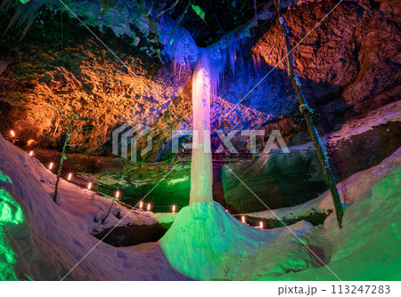 Shirahige waterfall in snow winter season Hokkaido, Japan