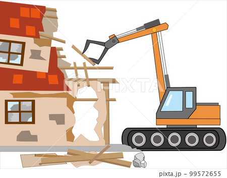 鉄筋コンクリートの建物の解体工事の作業を、重機で作業している。