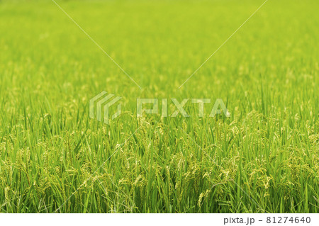 処暑のころの水田 穂が実り始めた稲 福島県国見町