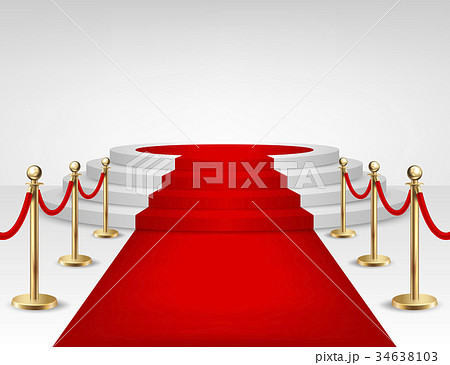 Realistic vector red event carpet, gold barriers