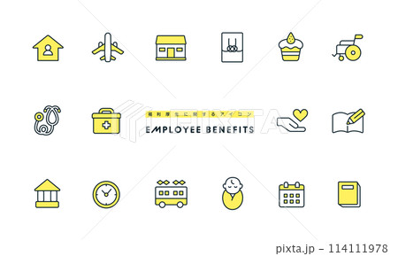 福利厚生に関するイラスト。ベクターアイコンセット。