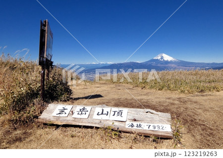 十国峠パノラマテラス1059から十国碑と富士山の眺望