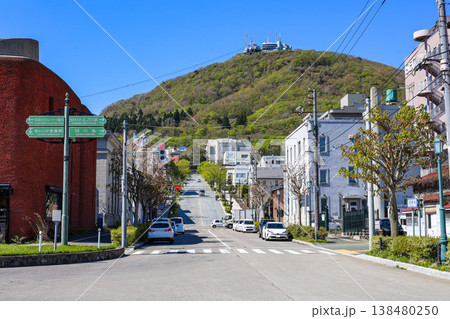 北海道小樽市 出抜小路(運河反対側)街並み 冬&雪&夕景&坂