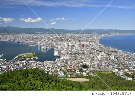 初夏の北海道函館市函館山から午後の函館市街地の風景を撮影