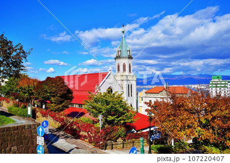 紅葉の季節を迎えた秋のカトリック元町教会 (北海道函館市元町)