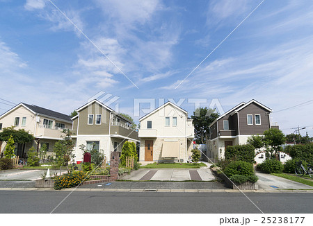 住宅街 イメージ 分譲住宅 快晴 青空 緑 コピースペース