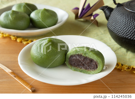 草餅でおやつ 春のよもぎ餅 和菓子