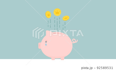 出て行くお金と泣いているピンク色の豚の貯金箱