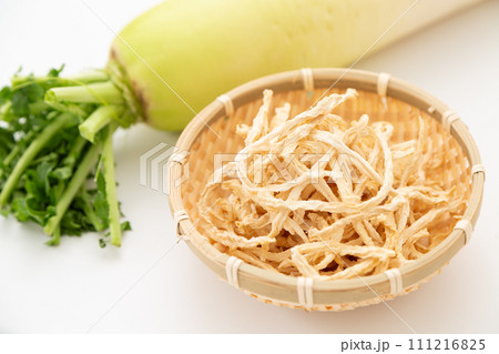 ざるに盛った切り干し大根(白背景)