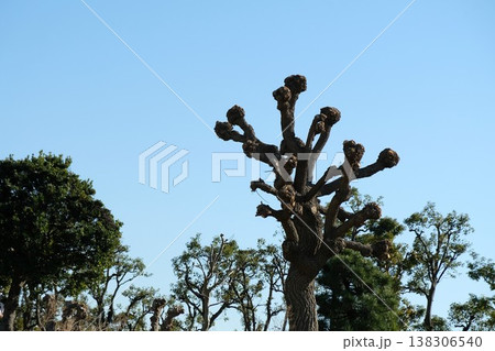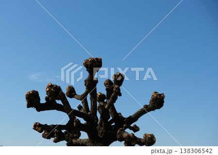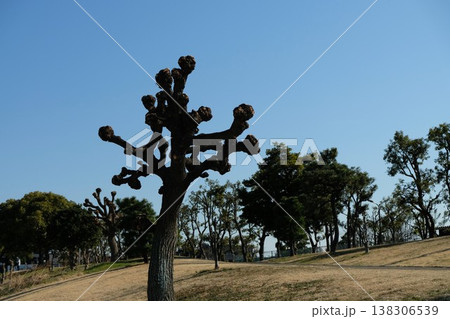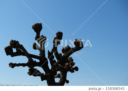 アメリカデイゴは、冬空に拳を突き上げた姿に変わっている