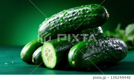A single cucumber slice with a cube of avocado, a cherry tomato half, and a sprinkle of finely chopped green onion, drizzled with lemon juice and olive oil, levitating against a soft, neutral