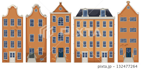 Traditional Dutch Canal Houses Row Vector Illustration