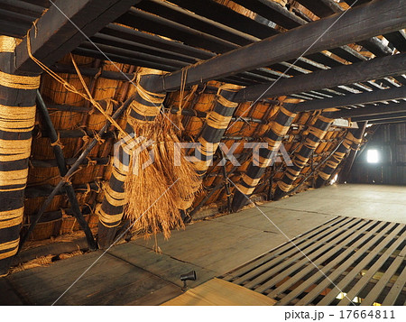 富山県 五箇山 相倉合掌造り集落 合掌造り民宿・勇助 茅葺き屋根の葺き替え作業 世界遺産