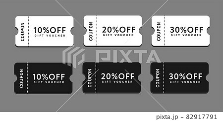 ストライプの影が付いたシンプルなクーポン券、チケット、ギフト券、割引券のフレームイラスト素材セット
