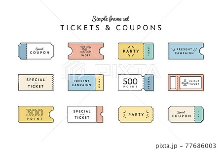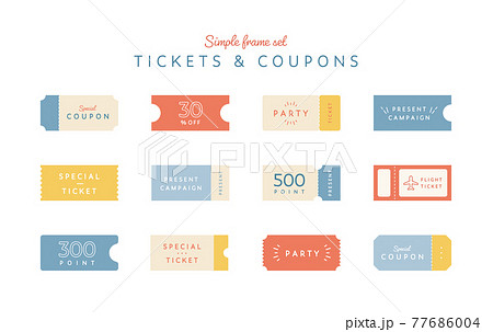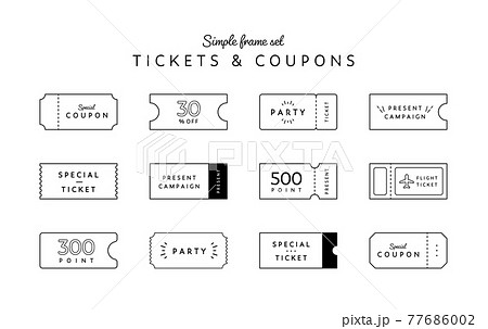 チケットやクーポン券のフレームのセット イラスト 割引券 あしらい 飾り罫 装飾
