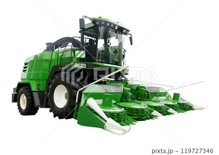 Combine harvester isolate background. Farm agricultural machinery for harvesting