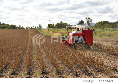 北海道厚沢部町鶉地区で大豆の収穫作業の風景を撮影