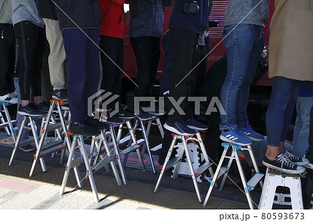 黄色い線を無視!駅ホーム先端で脚立使用の撮り鉄集団