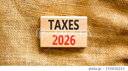 Taxes 2026 new year symbol. Concept words Taxes 2026 on beautiful wooden blocks. Beautiful canvas background. Business and taxes 2026 new year concept. Copy space.