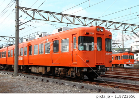 伊予鉄道古町車両工場に留置中の郊外線700系電車